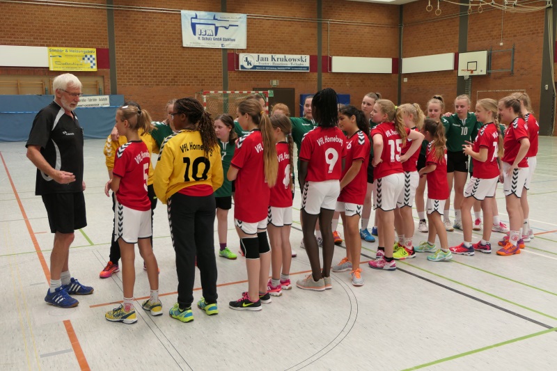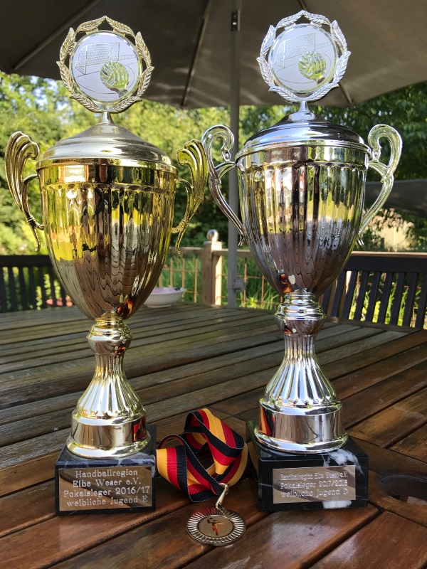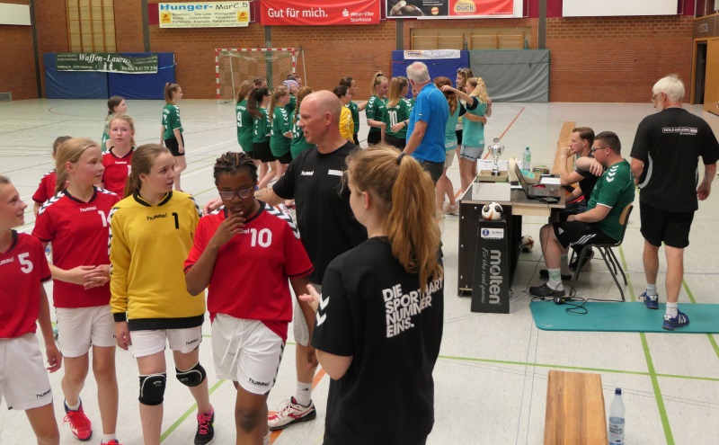 Nach dem Spiel gab es lobende Worte vom Vorsitzenden der Handballspielgemeinschaft Bremervörde/Stade Bernd Wassermann, Medaillen für alle, einen Pott Weingummis und den Pokal.