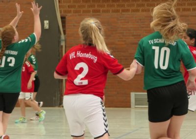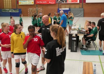 Nach knapp 8 Minuten stand es 4:3 für Schiffdorf und unsere 7-Meter-Misere begann. Von 8 Strafwürfen gelang es uns, 6 Stück nicht zu verwandeln. Nach dem 5:5 in der 13. Minute, konnten wir uns aber trotzdem langsam absetzen. In die Halbzeit gingen wir mit einer 7:10 Führung. Die Mädels brauchten wohl einige Minuten, nach der langen Spielpause, um wieder in Fahrt zu kommen.
