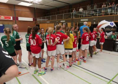 Vier Wochen nach Liga Ende, hatten wir noch unser Pokalfinale vor der Brust. Am Sonntag um 10:00 Uhr ging es für uns nach Cadenberge. Der TV Schiffdorf sollte, wie auch letztes Jahr in der E-Jugend, unser Gegner im Pokalfinale sein. In der Liga und im Pokalturnier konnten wir Schiffdorf drei Mal schlagen, aber es waren immer spannende und intensive Spiele. Zumal Schiffdorf ihre stärkste Spielerin nach den Ligaspielen abgegeben hatte, waren wir wohl Favorit. Aber das war der FC Bayern auch…