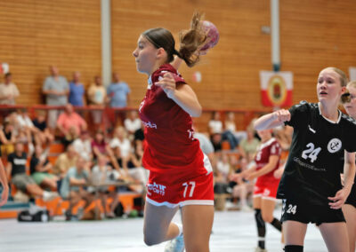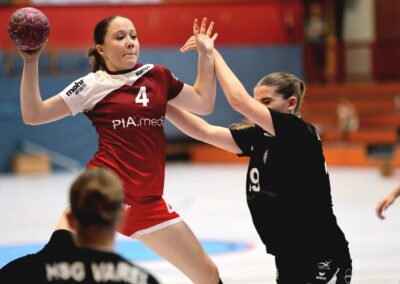 Schnell setzten sich unsere Mädels dort nach einer langen Anreise, angetrieben von einer starken Maja Hintz im Tor sowie Torjägerin Maili Möller, in der ersten Viertelstunde auf 3-10 ab. Die Spielerinnen, die von der Bank kamen, fügten sich nahtlos in die tolle Leistung ein und wir betraten die Kabine mit einer komfortablen 6-Tore Führung (8-14).
