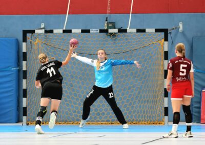 In Teil zwei der Partie ergatterten wir durch aufmerksames, kollektiv gutes Abwehrspiel immer wieder den Ball und erzielten so 6 schnelle Tore in Folge (8-20). Hier glänzte insbesondere Lina Berang durch ihr gutes Umschaltverhalten und einen sicheren Abschluss in der 1. Welle. Mathilda Bargsten erfüllte ebenfalls ihren Job und entschärfte zudem auch noch zwei 7m. Hier entsteht ein tolles Torwartduo.