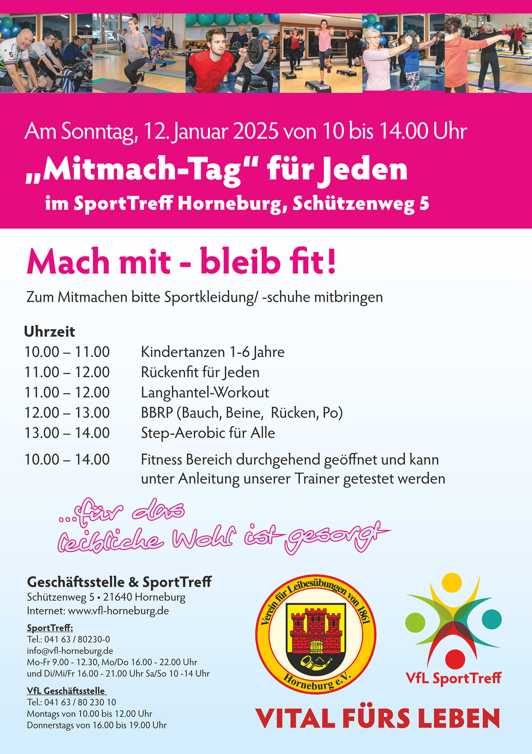 Am Sonntag, den 12. Januar 2025 laden wir alle Mitglieder und Nichtmitglieder unter dem Motto „Mach mit – bleib fit“ ein, den SportTreff des VfL Horneburg im Schützenweg 5 kennenzulernen.