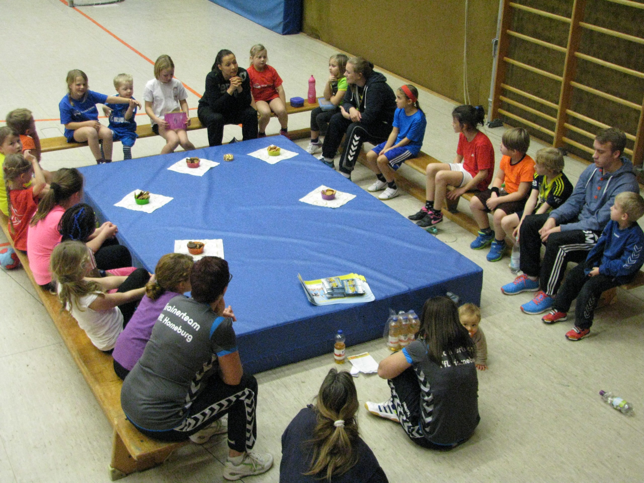 MiniHoher Besuch am 11.12.2014 in der Hermannstraße Kirsten und ich haben unsere Weihnachtsfeier in diesem Jahr um eine Woche vorverlegt, denn wir bekamen ganz besondere Unterstützung beim Training. Randy Bülau, Spielmacherin vom Erstligist BSV, hat uns besucht. Mit elf Minis, fünf Mädchen aus der wJE, den beiden FSJ-lern und Matze als Fotografen haben wir gemeinsam eineinhalb tolle und auch ein bisschen schweißtreibende Stunden in der Halle verbracht. Schon als Randy die Halle betrat, sah man einige Kinder tuscheln oder große Augen machen. Die Überraschung war also geglückt. Der Name war da nur so ein Problem. Allen war er irgendwie kurzfristig entfallen („Bis eben hab ich ihn noch gewusst!“) Randy ist ja auch wirklich kein allerwelts Name 😉 Als sie sich dann vorstellte wussten alle wer sie ist. Randy war keineswegs Zuschauerin sondern musste auch als Anspielstation fungieren, als Abwehrspielerin und beim Staffellauf und Mattenball ihr Team zum Sieg führen. Alle waren begeistert mit einer Bundesligaspielerin in einer Mannschaft zu sein (sonst wollen sie mich immer im Team haben, doch es sei allen Minis dieses eine Mal verziehen). Von Aufregung war bei den Kindern, im Gegensatz zu mir, keine Spur. Alle haben eine tolle Leistung abgerufen und die Aufgaben mit Bravur gemeistert. Zum Ende gab es dann noch ein Gruppenfoto und eine kleine Fragerunde mit selbstgebackenen Keksen und gaanz neugierigen Kindern. Eine große Überraschung gab es dann noch zum Abschluss! Randy holte nicht nur Autogrammkarten von ihrer ganzen Mannschaft aus ihrer Tasche, sondern hat uns zusätzlich noch eine Einladung des BSV´s mitgebracht, bei einem Heimspiel mit Randy und ihren Mitspielerinnen einzulaufen. Ich freue mich schon darauf am 14.02.2015 mit einer Horde Minis ins Sportzentrum Süd einzufallen. 😉 Nach dem Training erzählte Randy uns übrigens, dass es für sie das erste Mal war, bei so „kleinen“ Kindern mit dabei zu sein und sie auch anfangs etwas nervös war. Davon haben wir aber nichts gemerkt! Sie hat das wirklich top gemeistert und sich innerhalb der kurzen Zeit auf die jeweiligen Stärken der Kinder eingestellt! Natürlich war es auch für mich eine hohe Auszeichnung von Randy, ich betone nochmal eine Spielerin der 1. Bundesliga, zu hören dass es ein tolles Training war. Alles in allem: Vielen Dank nochmal an Randy! Es waren tolle eineinhalb Stunden!!! (gerne nächstes Jahr wieder) Vielen Dank an die anwesenden Minis und E-Jugendlichen! Ihr ward klasse!!! Vielen Dank an Matze als Fotografen, Franzi als Torwart und Björn für seine Mithilfe!!! Tina