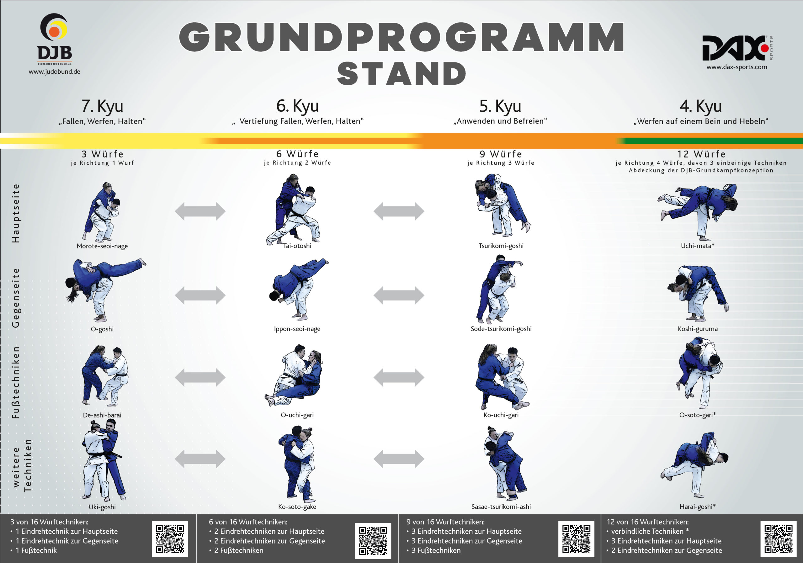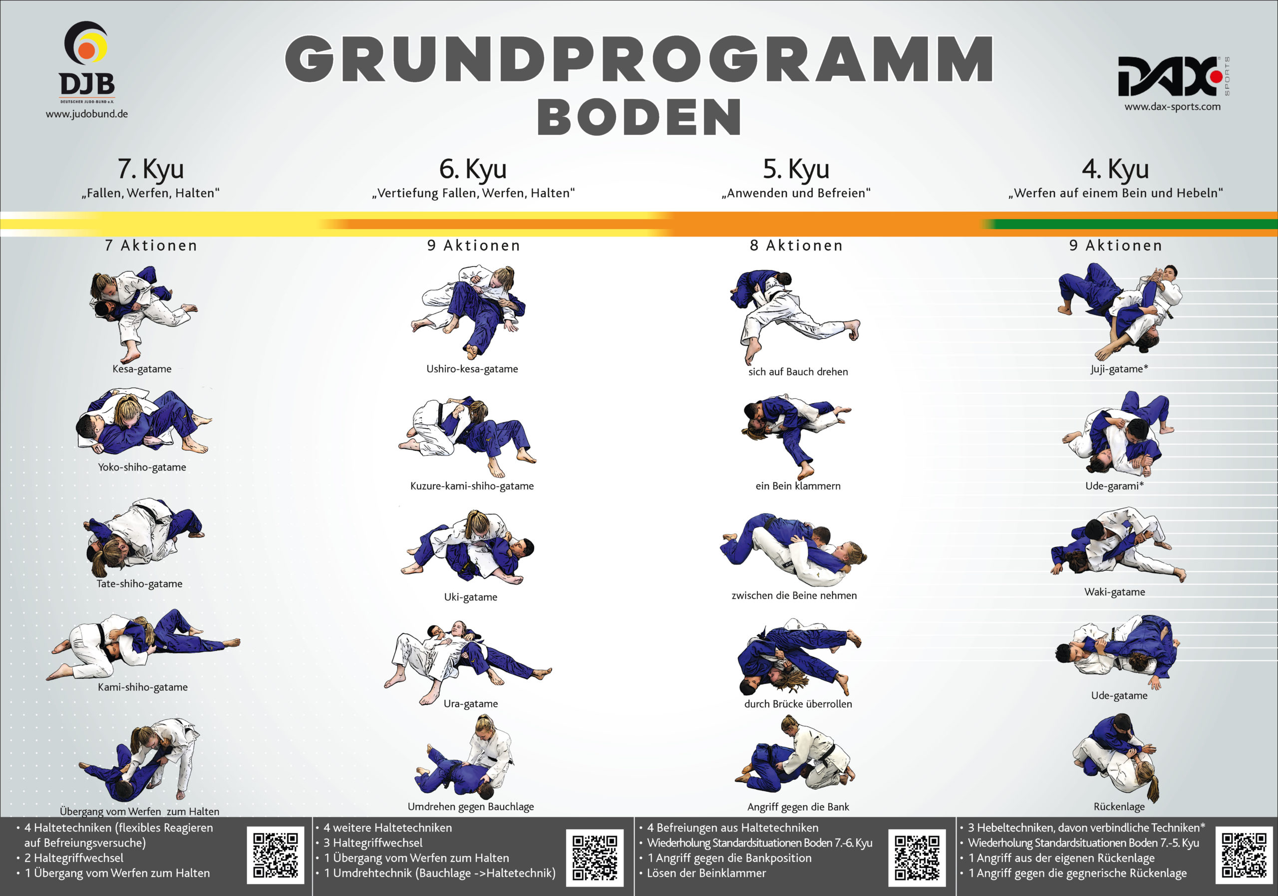 Grundprogramm: gelb bis orange-grün (Kyu 7 bis 4)
