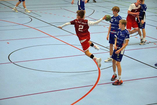 Am Samstag, den 17.12. empfingen unsere Jungs der mJc den HC Bremen in der Hermannstraße. Es wurde das erwartet schwere Spiel gegen den Tabellenführer. Ob es Ehrfurcht oder Müdigkeit war, ist schwer zu sagen. Nach sechs Minuten stand es jedenfalls 1:7 aus Horneburger Sicht. Über ein 2:11 kämpften sich unsere Jungs zum 6:12. Dann legten die Bremer wieder eine Schippe drauf und so stand es zur Halbzeit 12:21. Die zweite Halbzeit gestaltete sich dann deutlich ausgeglichener. Auf mehr als ein 28:33 kamen unsere Horneburger aber nicht mehr ran. Schlussendlich mussten sie sich gegen bärenstarke Bremer mit 32:39 geschlagen geben.