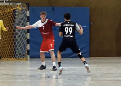 23 Stunden später traten unsere Horneburger Jungs zum Derby in Fredenbeck an! Bis zur fünfzehnten Minute und beim Stand von 10:10 war das Spiel komplett offen. Begünstigt durch eine Zeitstrafe gegen die Gastgeber konnten sich die Horneburger mit einem 4:0 Lauf innerhalb von gut zwei Minuten erstmals absetzen. Beim 16:17  war dann wieder alles offen. Drei Minuten vor dem Halbzeitpfiff konnten sich Marco Stark, Łukasz Minkus, Colin Dobrick und unsere Hilfe aus der D Jugend Janek Schubert noch mit je einem Treffer zum Halbzeitstand von 17:22 in die Torschützenliste eintragen. Mit diesem fünf Tore Vorsprung ging es in die zweite Halbzeit, die durch schöne Aktionen auf beiden Seiten geprägt war. Die Fredenbecker konnten den zwischenzeitlich auf acht Tore angewachsenen Vorsprung allerdings nicht mehr aufholen, sodass es am Ende 33:40 stand und der verdiente Derbysieg von unseren Jungs ausgiebig gefeiert wurde.