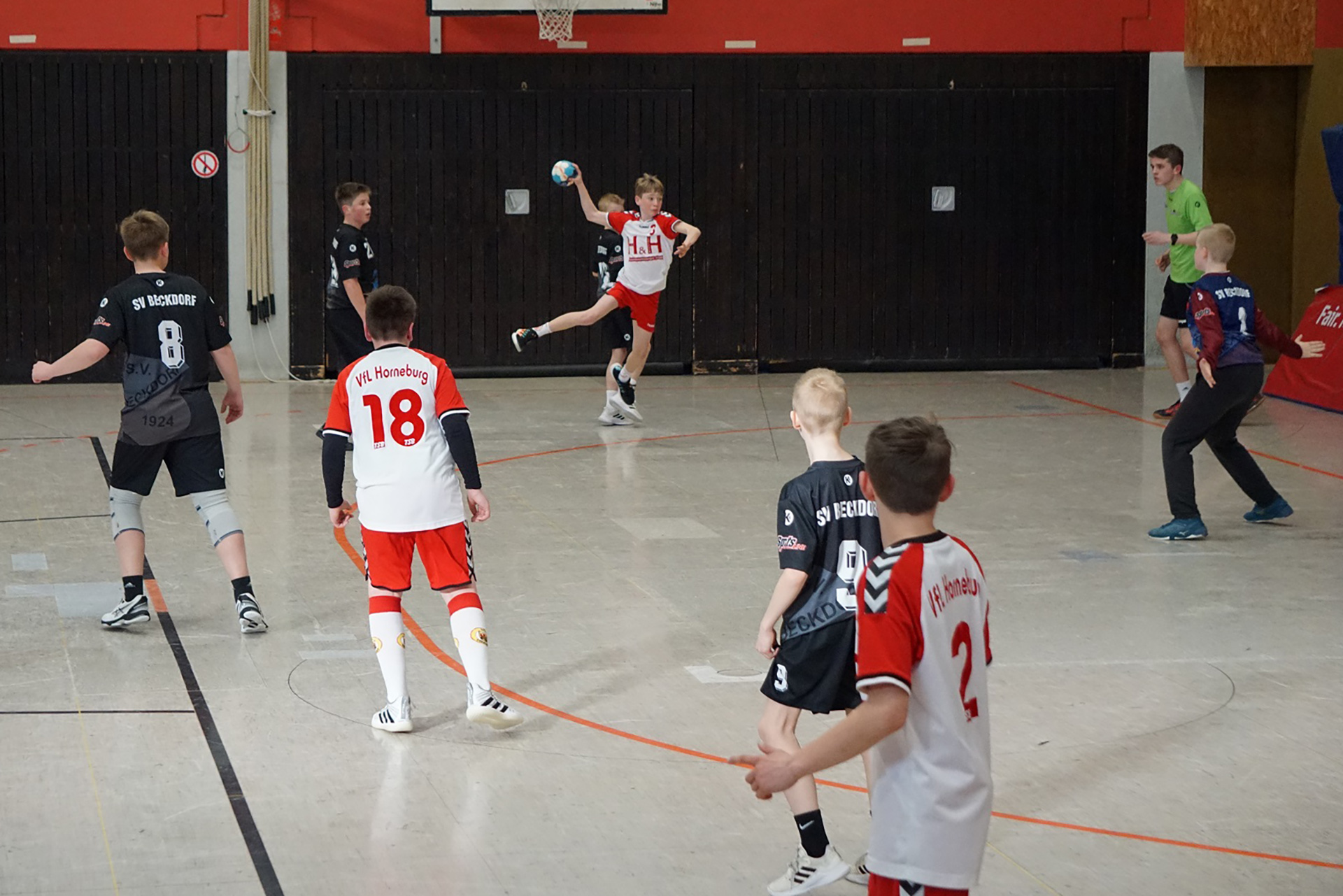 Die Zuschauer in der Halle feuerten ihre Mannschaft lautstark an, während die Spieler auf dem Feld die beste Saisonleistung zeigten. Der Angriff agierte immer wieder mit kreativen Aktionen und über das Spiel hinweg gewannen die Horneburger fast jedes Eins-gegen-Eins-Duell, was zu unzähligen klaren Chancen führte. Auch in der Abwehr war das Team sehr beweglich, sodass bei so gut wie jedem verlorenen Zweikampf sofort ein Mitspieler aushelfen konnte.