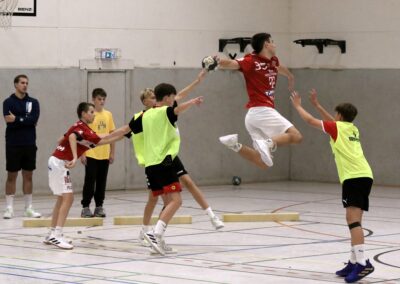 Die Kreisläufer unserer C-Jugend hörten aufmerksam zu und setzten Niklas‘ Ratschläge sofort im Training um. Es war offensichtlich, wie diese individuelle Betreuung ihnen half, ihre Fertigkeiten zu verbessern und ihr Verständnis für ihre Position zu vertiefen.