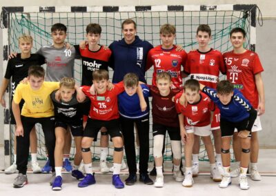 Besonders bemerkenswert war, dass Niklas Weller während des Trainings viele wertvolle Tipps an unsere Kreisläufer Hannes, Mika und Michel weitergeben konnte, da dies seine eigene Position ist. Seine Expertise und sein Verständnis für die Herausforderungen und Taktiken auf dieser Position waren für die jungen Kreisläufer äußerst lehrreich. Niklas betonte die Bedeutung der richtigen Positionierung, das Timing und der Kommunikation am Kreis sowie die Fähigkeit, Chancen zu erkennen und zu nutzen.