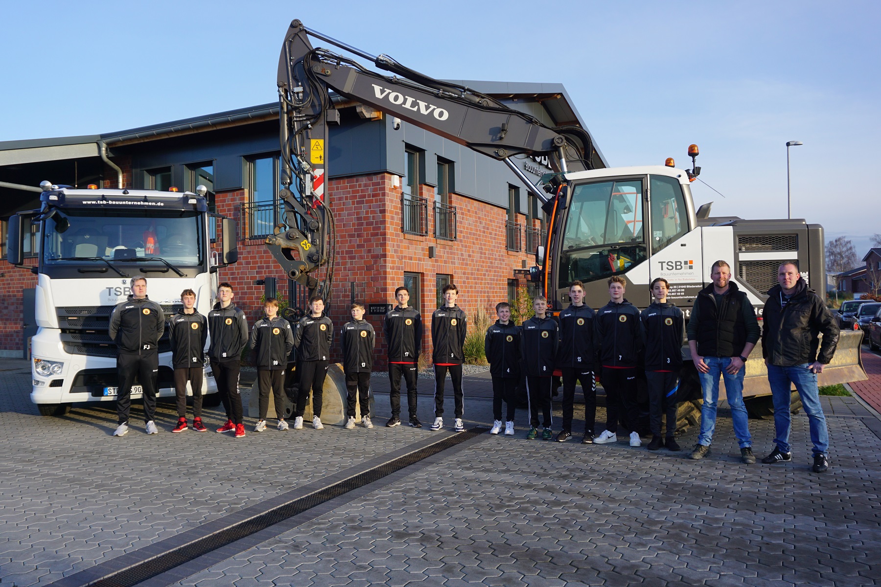 Das Bauunternehmen TSB GmbH hat unsere mJc mit Trainingsjacken ausgestattet. Bei einem Fototermin auf dem Betriebsgelände wurden gemeinsame Aufnahmen bei strahlendem Sonnenschein gemacht.