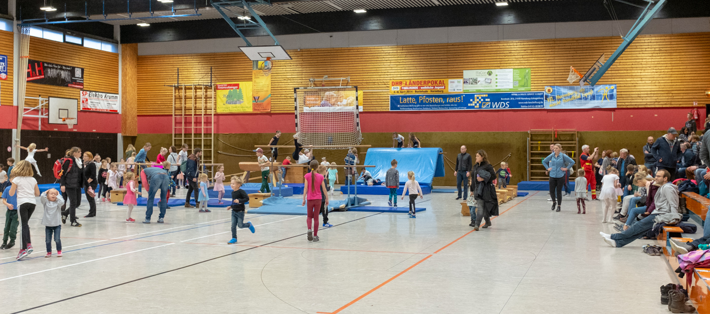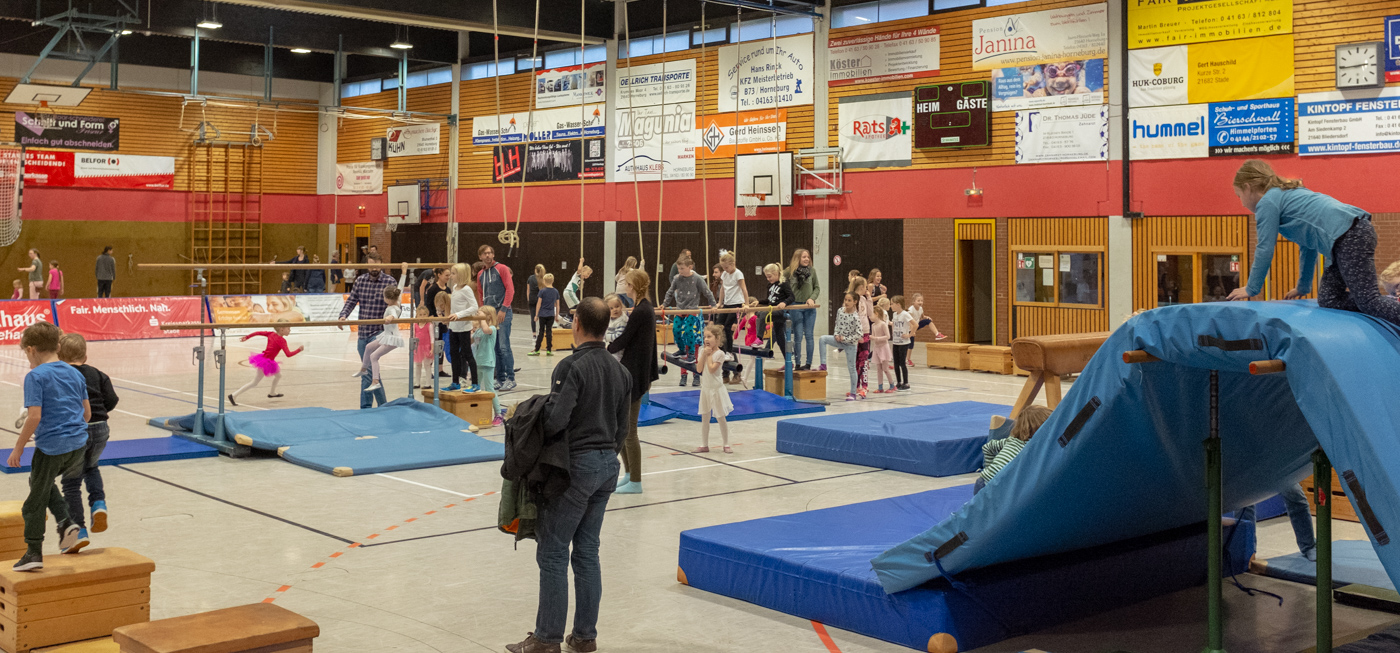 Beim Famlien Sport Tag am 11.11.18 war die Halle sehr gut besucht. Zum Start um 14.00 Uhr wurden die Zuschauer von den Ballerinas,den Tanzhexen und den Dance Girls schon gut eingestimmt. Danach wurde die Sporthalle für alle Kinder und Eltern für das Turnen und Toben freigegeben. Die aufgebauten Turnstationen wurde von „Allen“ ob GROß oder klein gut angenommen. So kam jeder auf seine Kosten.